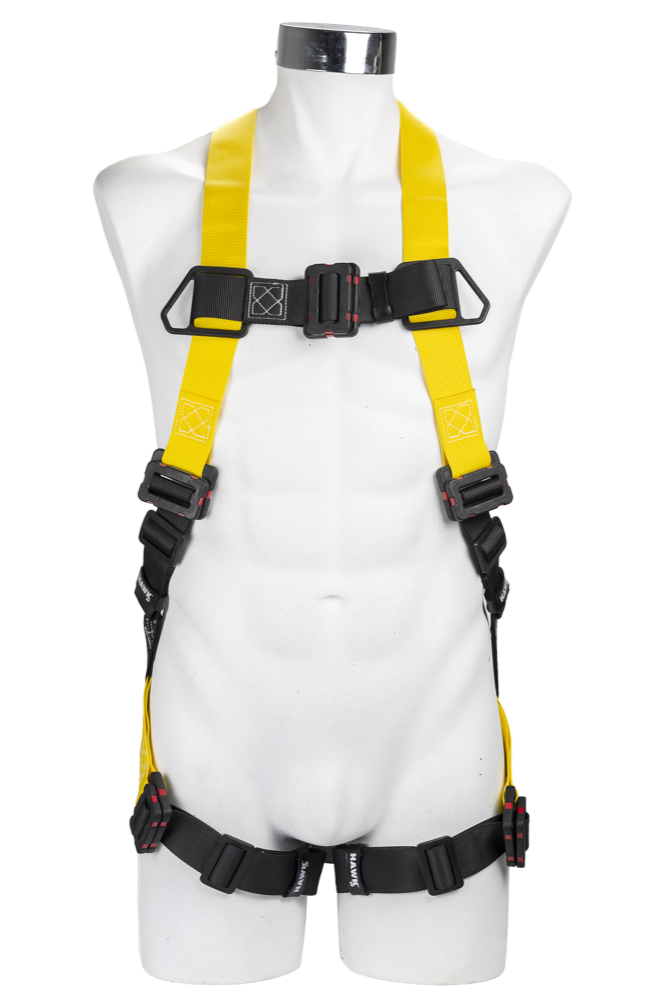 Descripción: Los herrajes dieléctricos están compuestos por acero recubierto de Omnilon® lo cual permite una baja conductividad. El anillo dorsal permite la función de parar una posible caída.
