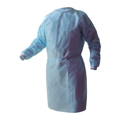 Descripción: Bata repelente a líquidos elaborada con tela no tejida de manga larga con puños tipo cardigan.