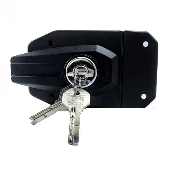Cerradura de sobreponer extra seguridad para puertas de metal o madera de 35 a 50 mm de espesor con juego de llaves y tornillería para su instalación fácil y rápida.