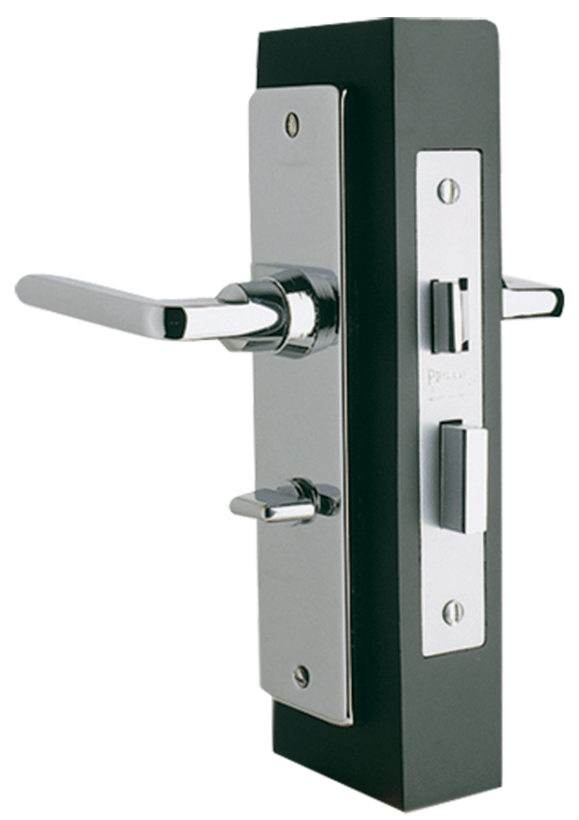Detalles: El cerrojo acciona con mariposa por el interior y llavín de emergencia por el exterior. El picaporte opera con manijas por ambos lados. Función: baño
