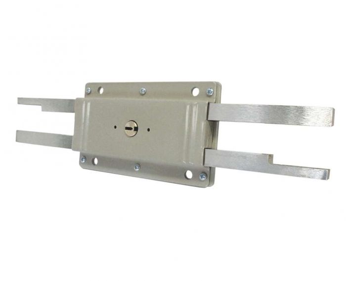Detalles: Dos cerrojos de acero sólido con mecanismo de cremallera que se extienden en direcciones opuestas, ideal para cortinas metálicas soldable.