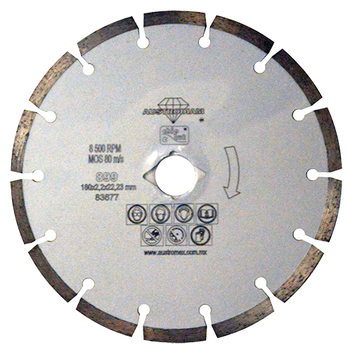 Detalles: Disco de diamante dentado para corte en seco de uso universal en materiales de construcción para trabajo ligero no intensivo línea de bajo precio somos el primer fabricante en el continente americano certificado por la osa organización for the safety of abrasives lo que garantiza que el producto ha sido fabricado y probado para cumplir con los estándares de seguridad más altos dimensiones in 7×0 09×7 8dimensiones mm 175×2 2×22 2abrasivo diamante marca Austromex