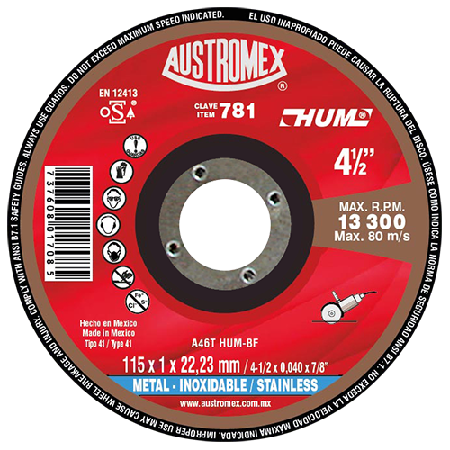 Disco para corte de acero inoxidable 4-1/2 Pulg 781 Austromex