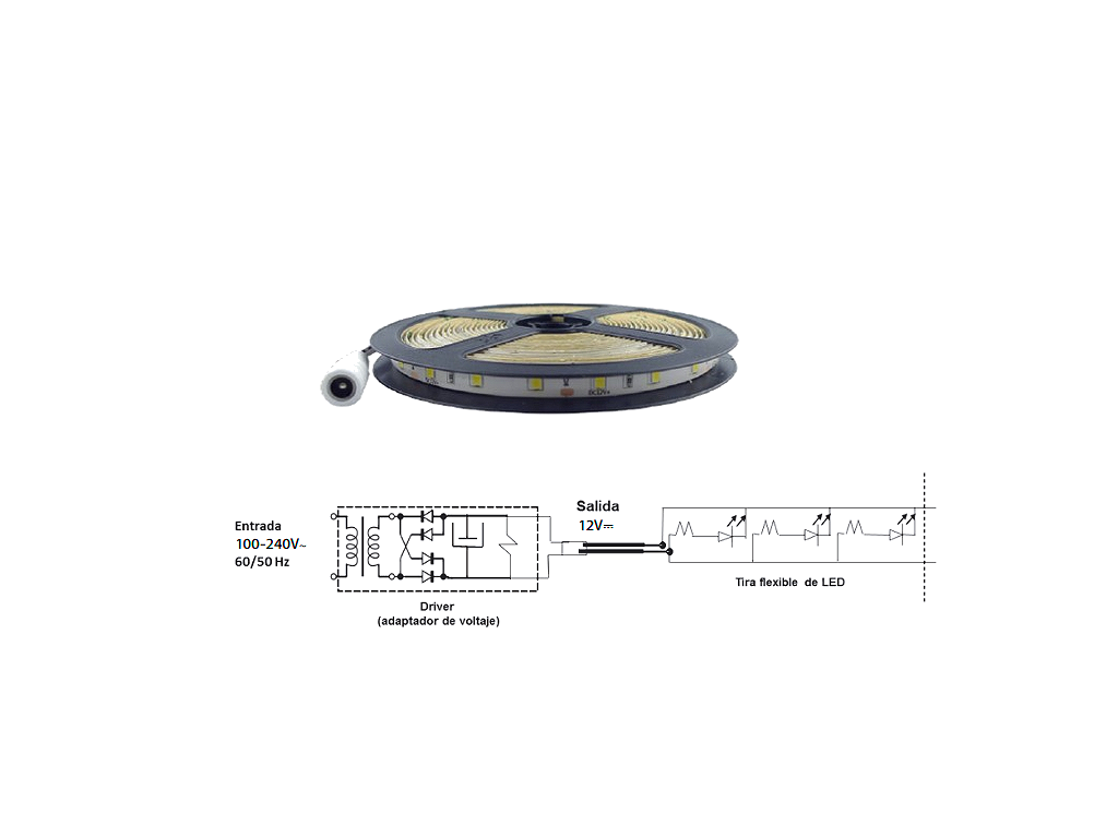 Tira flexible led Requiere driver a 12V⎓. No incluido.24W | 4.8W/m